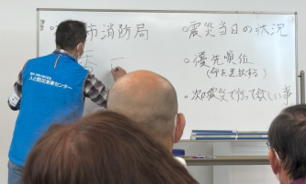 ひと口に防災減災の必要性を言いますけれども、阪神淡路大震災のような災害はいつなんどき起きるかわかりません。最初の大揺れでこわれない、倒れない、崩れない、落ちない対策をしておくことと、あとはいざ大地震が起きたら、消防署員や消防団員にはやるべきことが山ほどあって、それが何日も何日もずっと続くという心構えが肝心です。香西さんの講習は以上でした。